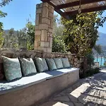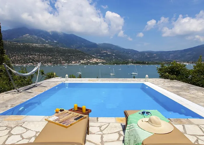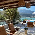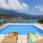 Guests can enjoy a seaside sea view from a terrace at Villa Panorea Geni, a 20-minute walk from the Lakka Beach.